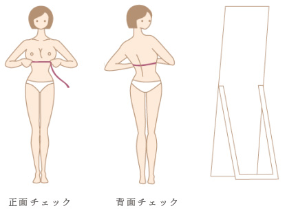 バストを測定するだけでなく、全体の姿勢や体型を確認するためには 全身鏡が便利です。 全身鏡を使用することで、正面から背面まで全体の姿勢を確認できます。 (なければ半身でも可)